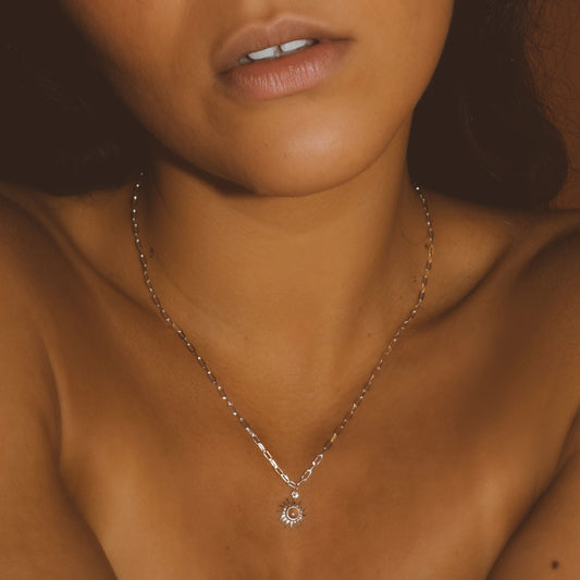 Sol Sunstone Charm Necklace Silver